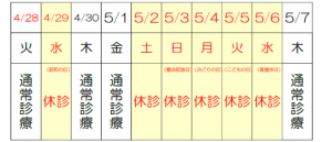 糸満晴明病院からのお知らせ ゴールデンウィーク期間中の診療について 糸満晴明病院からのお知らせ ゴールデンウィーク期間中の診療について 2026.04.24 当院のGW期間中の診療スケジュールは以下の通りとなります。 休診期間中、皆様にはご不便をおかけいたしますが、 何卒ご理解とご協力のほどお願い申し上げます。 前のページへ お知らせ一覧へ戻る